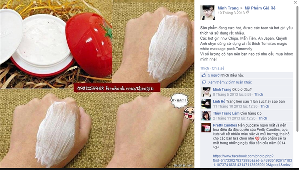 Gọi điện đến một shop chuyên bán kem trộn qua mạng thì được người bán hàng “tư vấn”: "Kem face của chị tốt lắm em ơi, xài thử sau một tuần là biết kết quả liền. Hàng chị bán rất chạy, mỗi ngày bán được cả trăm hộp. Cả nam lẫn nữ đều xài được, mụn cỡ nào, da xấu cỡ nào cũng sẽ trắng mịn và sạch mụn.