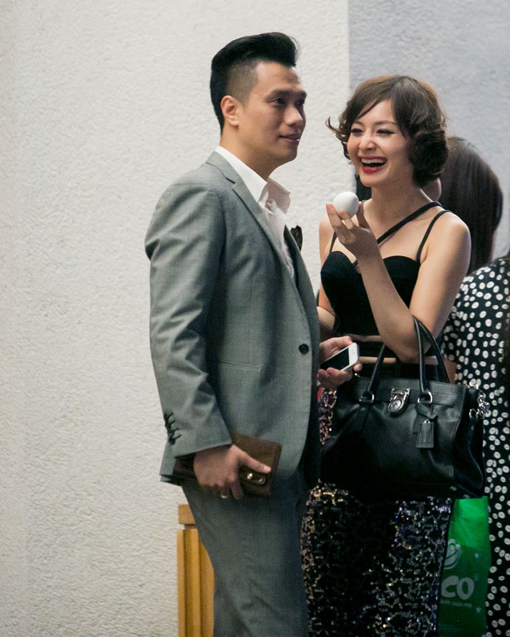 | Sau khi sự kiện kết thúc, Việt Anh và Lan Phương ra về cùng nhau. Trong lúc đợi tài xế riêng đến đón, hai diễn viên đứng nói chuyện vui vẻ. |
