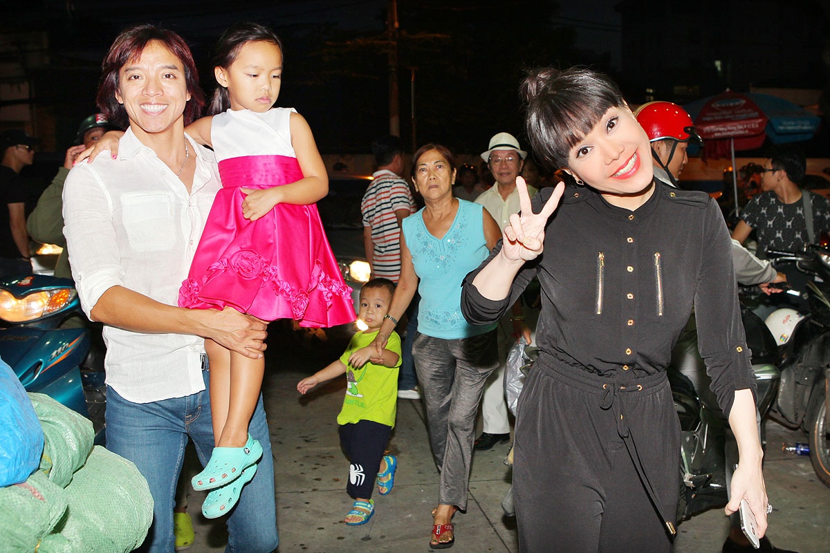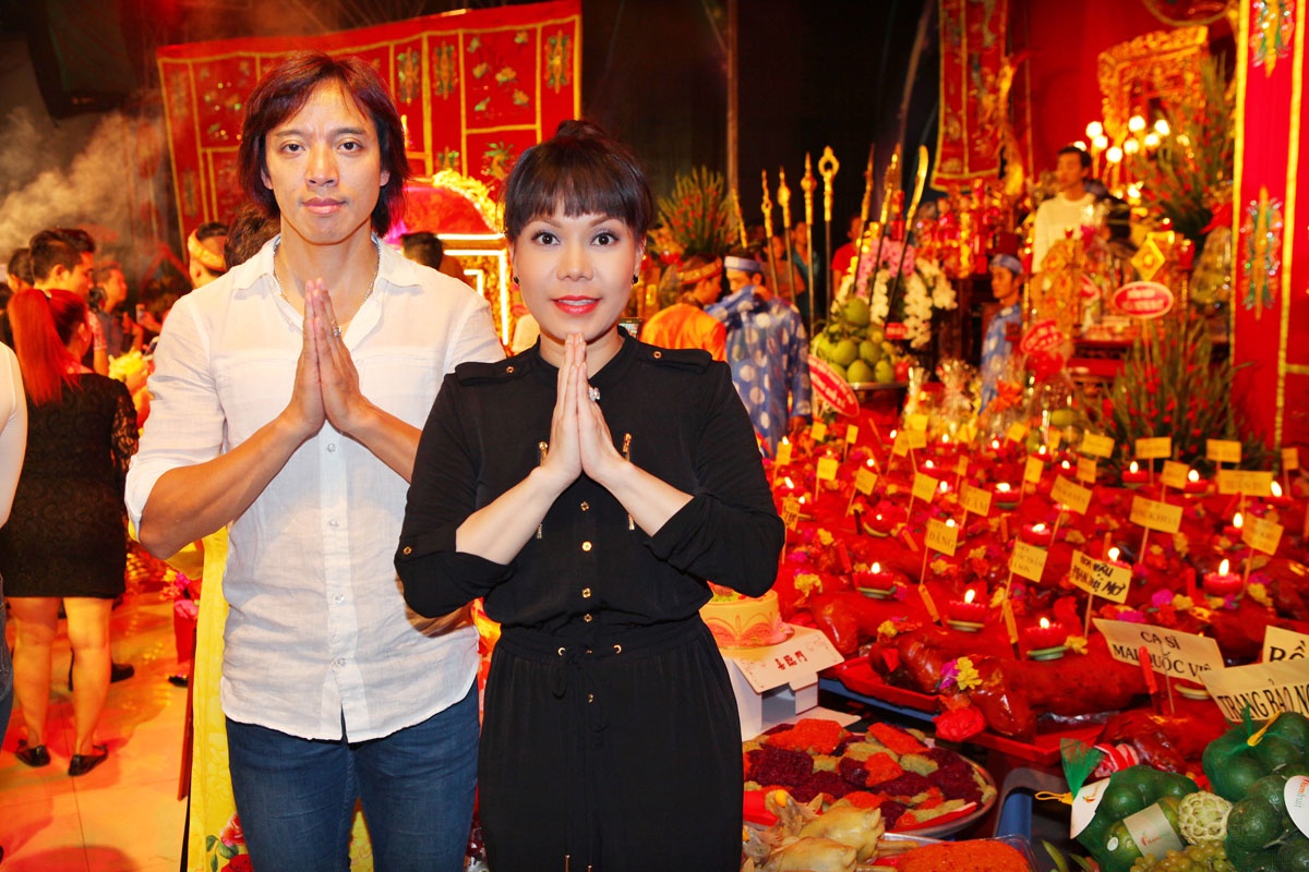 Ngày 22/9, cả gia đình Việt Hương về Việt Nam để tham dự lễ giỗ Tổ cùng các đồng nghiệp. Tối 23/9, cặp vợ chồng đưa bé Elyza Phương Vy đến sân khấu 126 - nơi Hoài Linh tổ chức - để cúng Tổ và lấy lộc. |