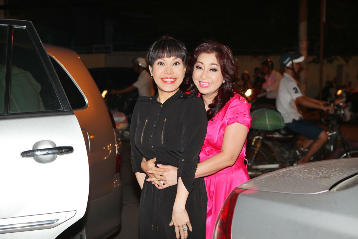 "Vợ Sáu Bảnh" vừa xuống xe, NSƯT Thoại Mỹ lao đến ôm chầm lấy Việt Hương. Nữ nghệ sĩ hài bất ngờ nhưng liền sau đó tay bắt mặt mừng, trò chuyện tíu tít với đồng nghiệp. |