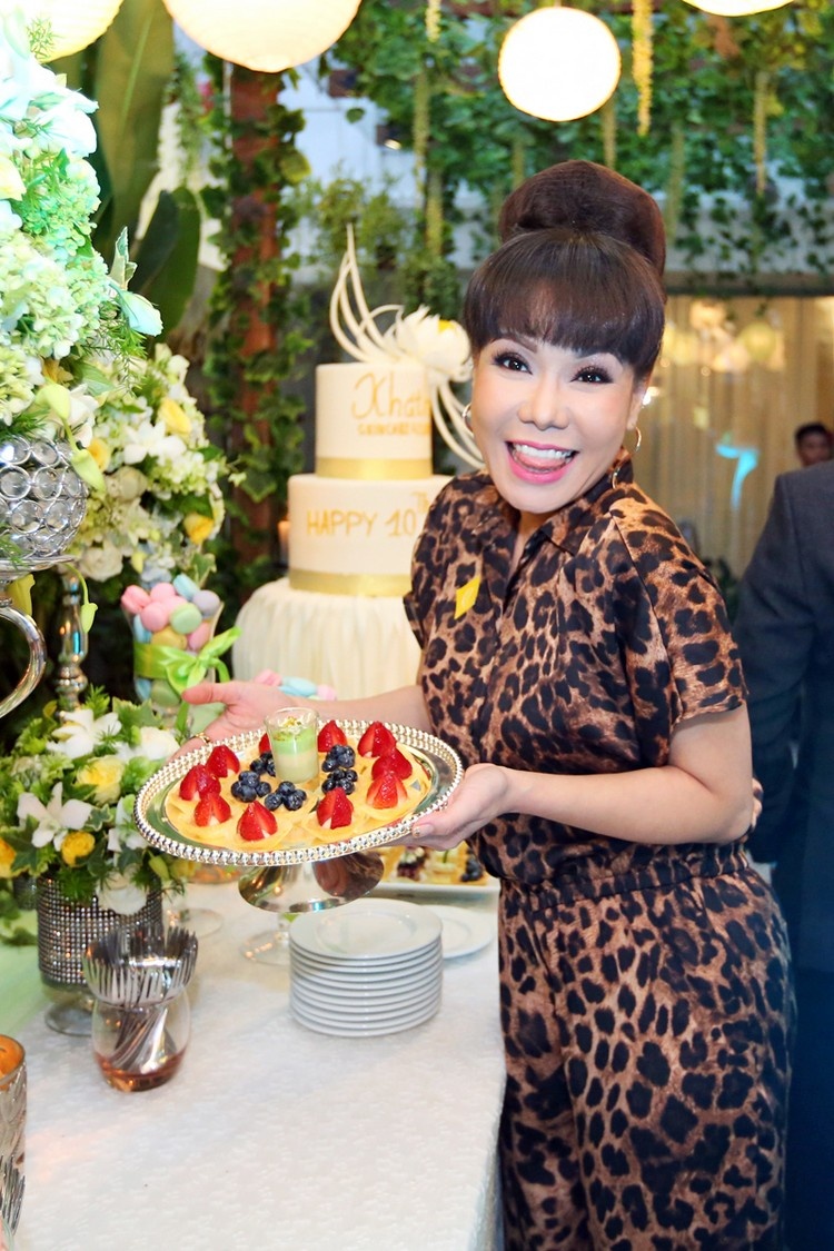 | Tối 13/8, hoa hậu - doanh nhân Thu Hoài tổ chức tiệc kỷ niệm 10 năm thành lập cơ sở kinh doanh tại TP HCM. Sự kiện quy tụ nhiều sao Việt tham dự. Trong ảnh, Việt Hương diện jumpsuits họa tiết nổi bật chụp ảnh cùng bà chủ Thu Hoài. |