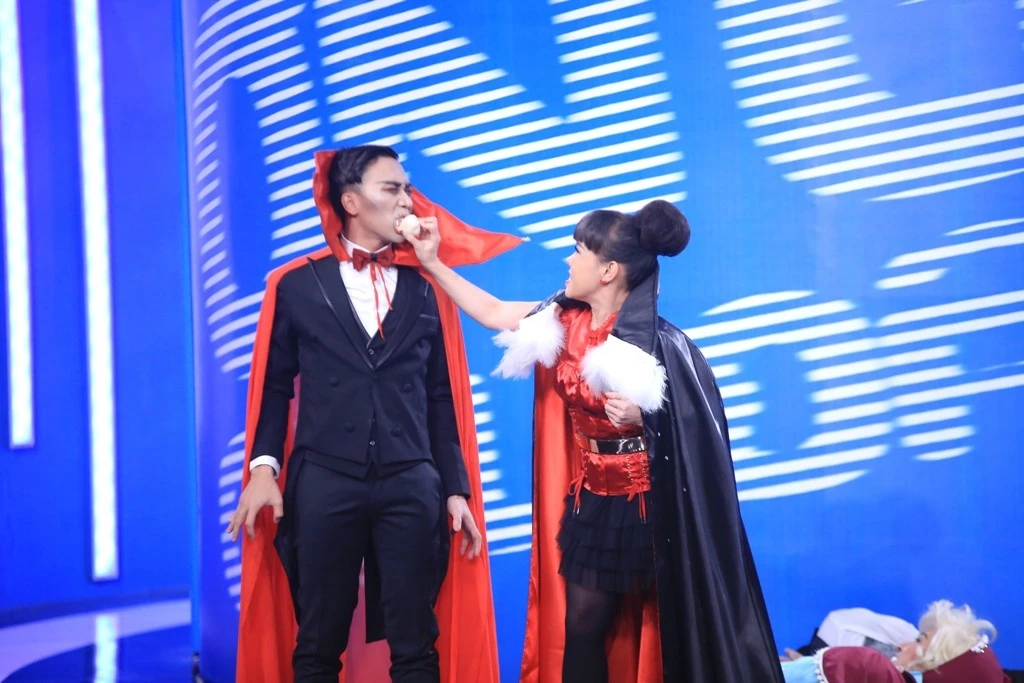 Sau đó, Việt Hương tiêu diệt ma cà rồng bằng thứ vũ khí không ai ngờ tới. Nữ hiệp sĩ cho Trấn Thành ăn củ tỏi tươi khiến anh ngất xỉu. |