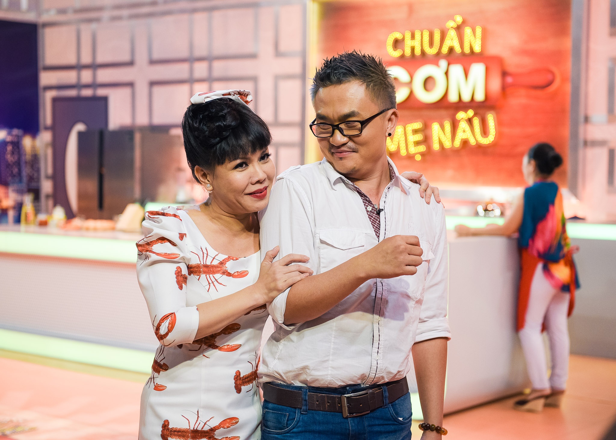 Việt Hương và Đại Nghĩa trên trường quay Chuẩn cơm mẹ nấu. |