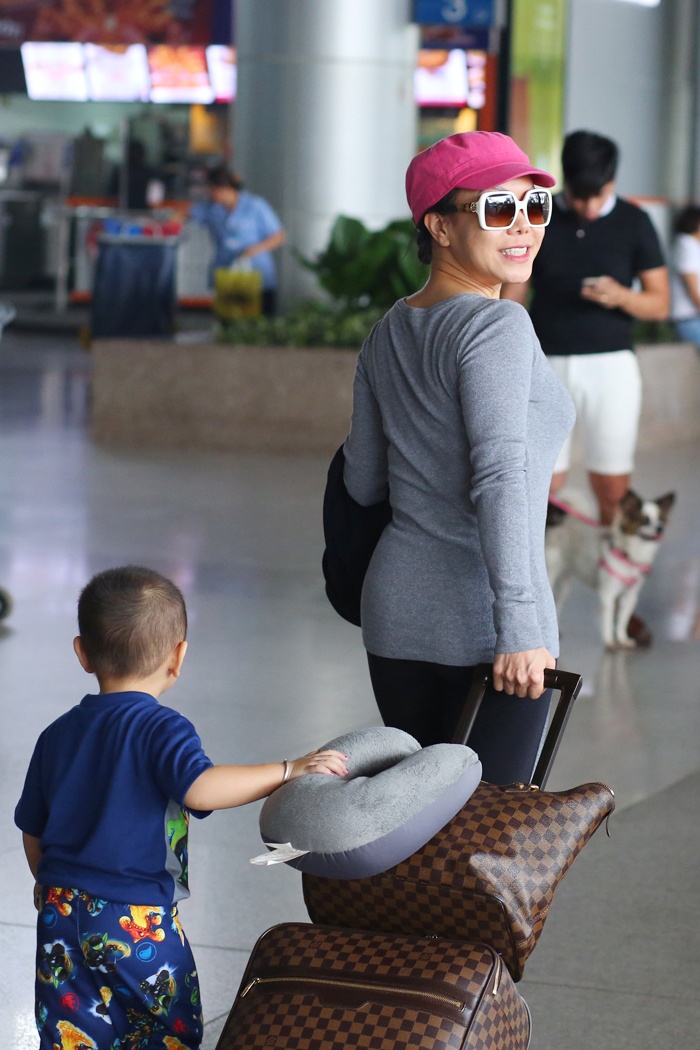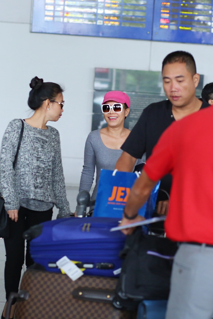 Dù trải qua những ngày khó khăn ở xứ sở hoa anh đào nhưng nữ danh hài vẫn giữ được vẻ tươi tắn khi về đến sân bay Tân Sơn Nhất.