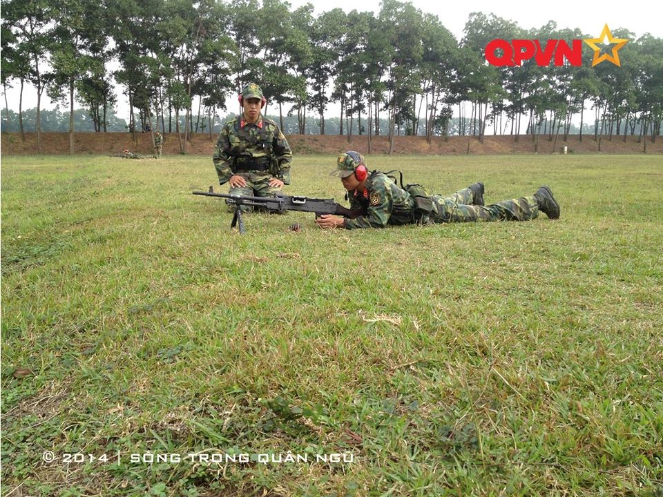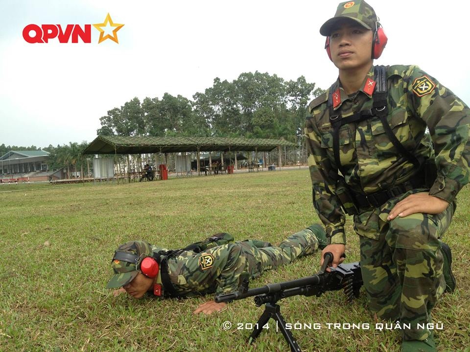 Tổng quân số được huy động cho lễ khai mạc là 922 cán bộ, chiến sĩ. Ảnh: Tư thế ở điểm xuất phát lên đường bắn súng đại liên.