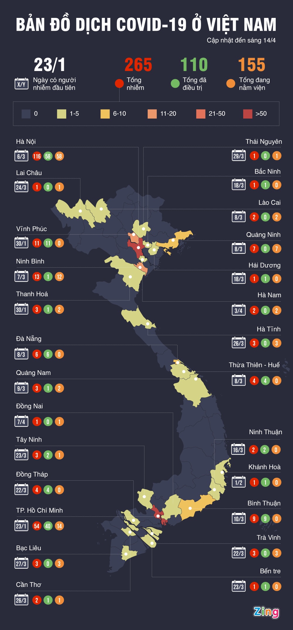 Thứ tư, dịch Covid-19 ở Việt Nam chỉ tập trung ở Hà Nội, TP.HCM và có xuất hiện ở một số tỉnh, thành phố khác, song đa số các tỉnh, thành phố của Việt Nam chưa có người bị nhiễm tại địa phương.