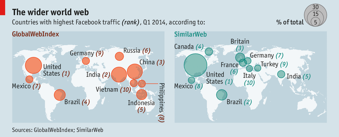 Tuy nhiên, theo The Economist, phương thức thống kê của GlobalWebIndex và SimilarWeb đều được tối ưu hóa cho máy tính cá nhân. Cả hai công ty này vẫn chưa có cách khảo sát đến các thiết bị di động để đưa ra con số chính xác hơn.