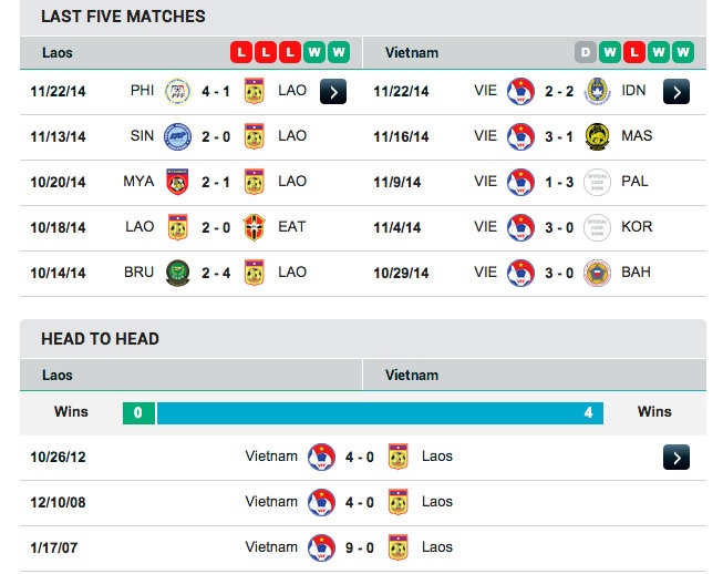 | Phong độ và thành tích đối đầu vượt trội của ĐTVN so với Lào. |