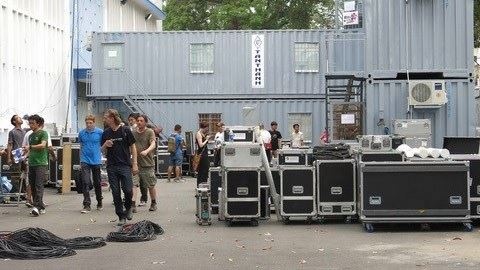 | Trung tâm truyền hình dã chiến được dựng ngay tại khuôn viên sân Thống Nhất. Rất nhiều máy móc công suất lớn, tối tân chạy suốt ngày đêm, tiêu thụ 1 lượng điện rất lớn. Ảnh: Fanpage ĐT Bóng đá nữ. |