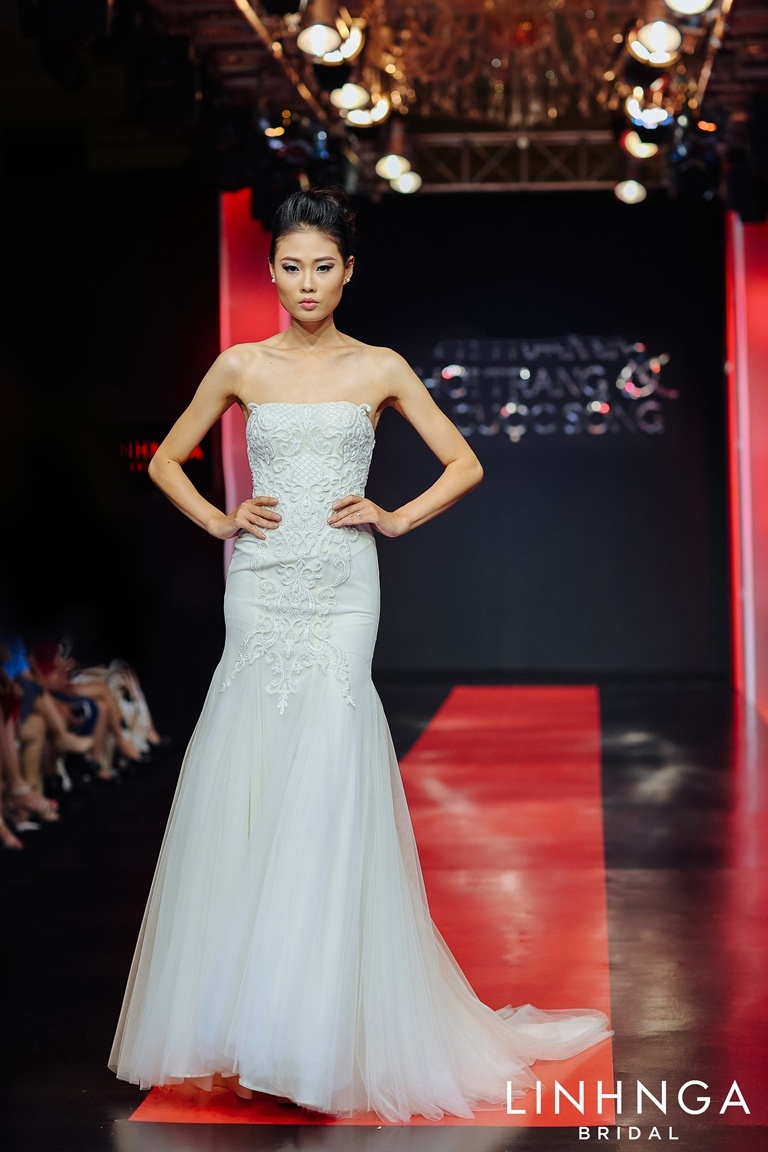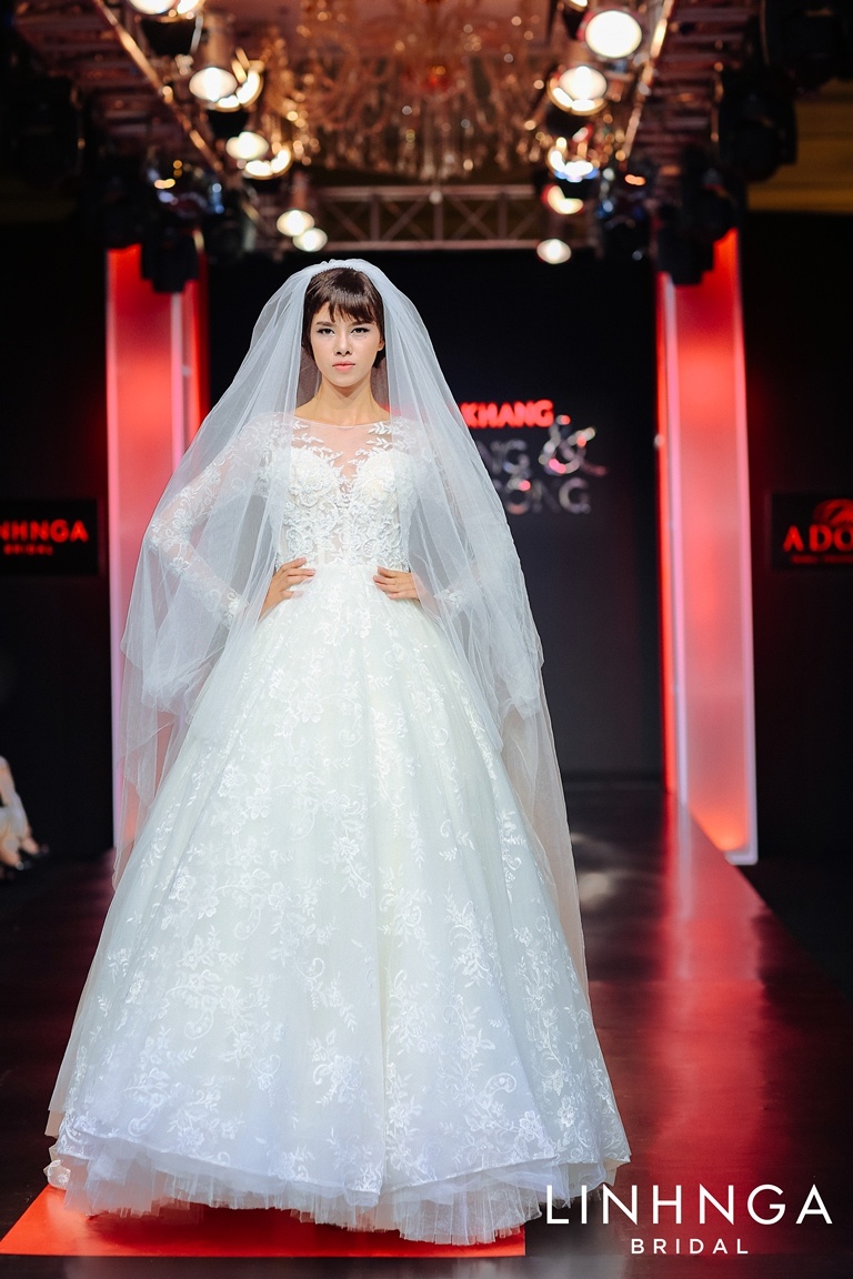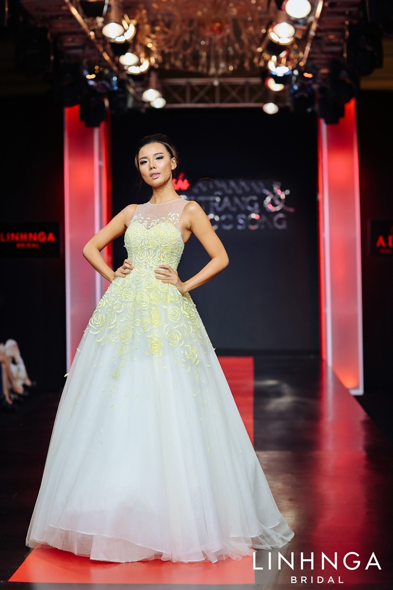 | Cô xuất hiện với ngoại hình trẻ trung không thua kém dàn người mẫu Vietnam Next Top Model trong chương trình ra mắt BST của Linh Nga Bridal. Thiết kế váy cưới với chất liệu trơn, xoè tự nhiên, đơn giản thanh lịch với phom dáng chuẩn được dành riêng cho Việt Trinh tôn lên nét khả ái của cô. Bộ sưu tập váy cưới được lấy cảm hứng từ khu vườn bí mật trong những câu chuyện cổ tích với hoa lá, hoạ tiết, màu sắc đa dạng, phong phú với các kỹ thuật cắt, xếp tùng đặc biệt được áp dụng lần đầu tại Việt Nam giúp tôn triệt để ưu điểm của cô dâu. Bộ sưu tập được trình diễn bởi những người mẫu Next Top Model hàng đầu Việt Nam. |