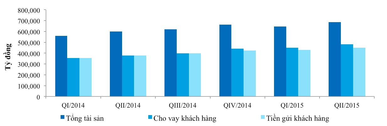 Tính đến hết quý II/2015, tổng tài sản của VietinBank đạt 686.000 tỷ đồng, tăng 3,72% so với cuối năm 2014 và tăng 14,74% so với cùng kỳ năm trước, giúp ngân hàng này tiếp tục là một trong các ngân hàng dẫn đầu trong hệ thống NHTM Việt Nam.