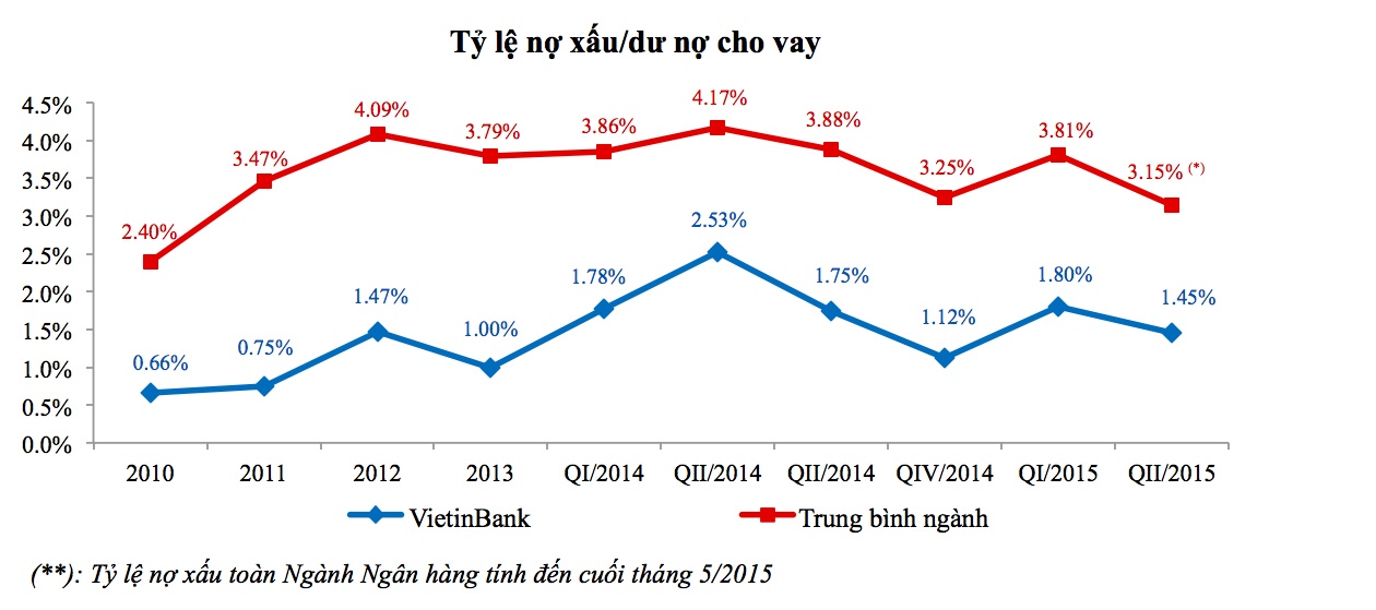 Việc thành lập Khối Quản lý rủi ro với chức năng kiểm soát độc lập rủi ro trong hoạt động của ngân hàng, hoạt động tín dụng của VietinBank hiện nay được kiểm soát chặt chẽ với 3 vòng kiểm soát, góp phần giảm tỷ lệ nợ xấu của ngân hàng. Tính đến hết quý II/2015, tỷ lệ nợ xấu của VietinBank chiếm 1,45% dư nợ cho vay khách hàng, duy trì ở mức thấp hơn nhiều so với mức trung bình ngành là 3%.