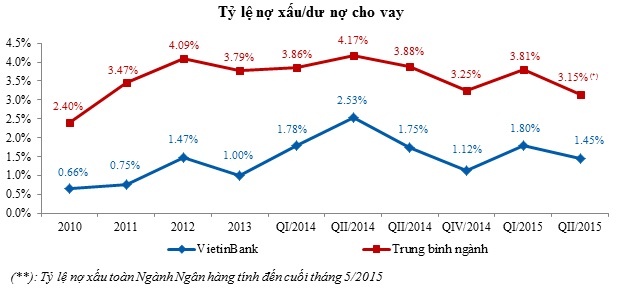 Việc thành lập khối Quản lý rủi ro với chức năng kiểm soát độc lập rủi ro trong hoạt động của ngân hàng, hoạt động tín dụng của VietinBank hiện nay được kiểm soát chặt chẽ với 3 vòng kiểm soát, góp phần giảm tỷ lệ nợ xấu của ngân hàng. Tính đến hết quý II/2015, tỷ lệ nợ xấu của VietinBank chiếm 1,45% dư nợ cho vay khách hàng, duy trì ở mức thấp hơn nhiều so với mức trung bình ngành.