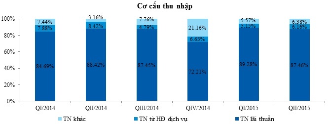 Tính lũy kế từ đầu năm đến hết 30/6, tổng thu nhập hoạt động của VietinBank tăng 11,68% so với cùng kỳ năm trước, đạt gần 11.000 tỷ đồng. Trong đó, thu nhập lãi thuần tăng 8,45% và thu nhập thuần từ hoạt động dịch vụ tăng 1,24%. Đây vẫn là hai nguồn thu chính của ngân hàng (chiếm 94% tổng thu nhập hoạt động). Trong các khoản thu nhập còn lại, thu nhập từ mua bán chứng khoán kinh doanh tăng mạnh 89,58% so với cùng kỳ năm trước do ngân hàng đẩy mạnh hoạt động kinh doanh chứng khoán, cùng với điều kiện thị trường thuận lợi khiến thu nhập từ hoạt động này tăng mạnh.