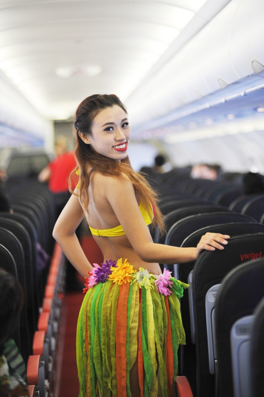Những ai có mặt trên chuyến bay không khỏi ngạc nhiên, say mê trong vũ điệu chào mùa hè thật vui tươi, rộn ràng.