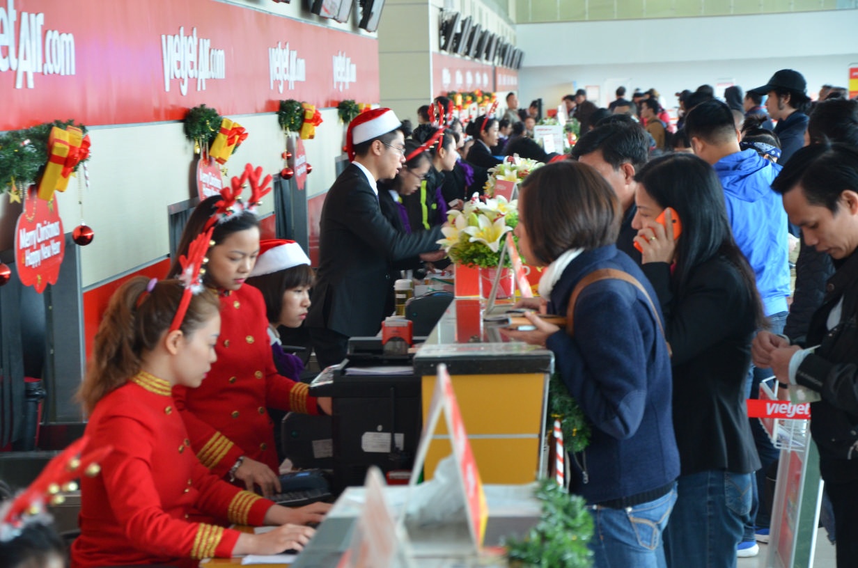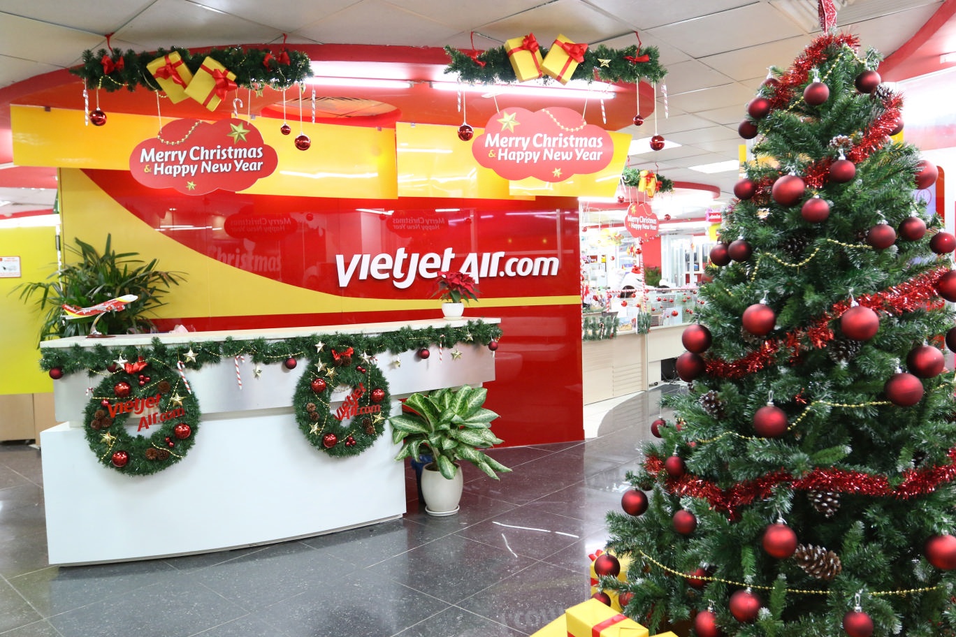 Bay cùng Vietjet thời gian này, hành khách có thể cảm nhận không khí tưng bừng ngay khi đặt chân đến sân bay. |