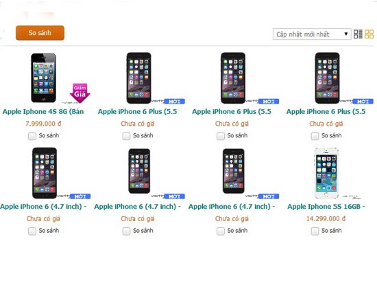 Tại một số cửa hàng bán lẻ của Viettel Store ở Hà Nội ngày 7/11, hiện hệ thống này đang công bố mức giá dự kiến chi tiết của iPhone 6 và iPhone 6 Plus các dung lượng từ 16 – 128 GB, bản khoá mạng Viettel và không khoá mạng.