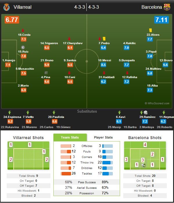 Chiến thắng tối thiểu 1-0 giúp Barcelona hoàn thành mục tiêu giành trọn vẹn 3 điểm ở chuyến hành quân tới El Madrigal. Ở vòng đấu tiếp theo, đội bóng của HLV Luis Enrique sẽ có cuộc tiếp đón đối thủ khó nhằn Athletic Bilbao tại Nou Camp vào ngày 13/9.