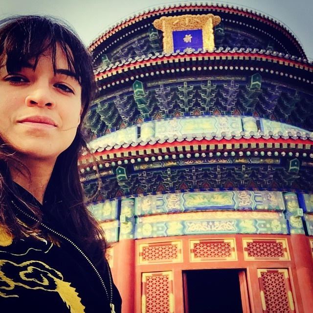 Cùng lúc đó, Michelle Rodriguez đăng tải hình chụp khi ghé thăm đền Thiên Đàn. Đây là quần thể các tòa nhà ở nội thành Đông Nam Bắc Kinh, nơi các hoàng đế nhà Minh và Thanh thực hiện nghi lễ tế trời hàng năm.