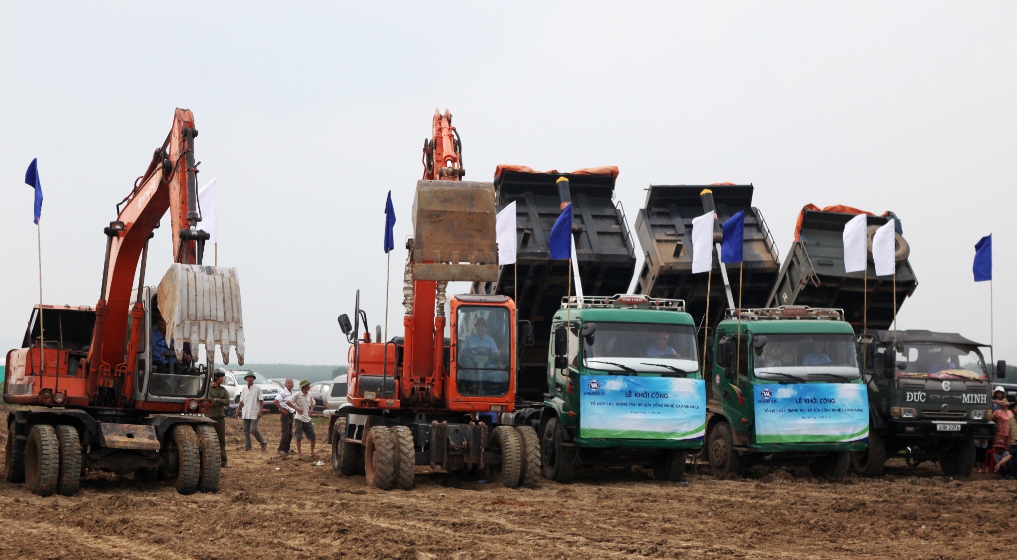 | Các phương tiện tham gia thi công ngay sau lễ động thổ tổ hợp các trang trại bò sữa công nghệ cao Vinamilk. |