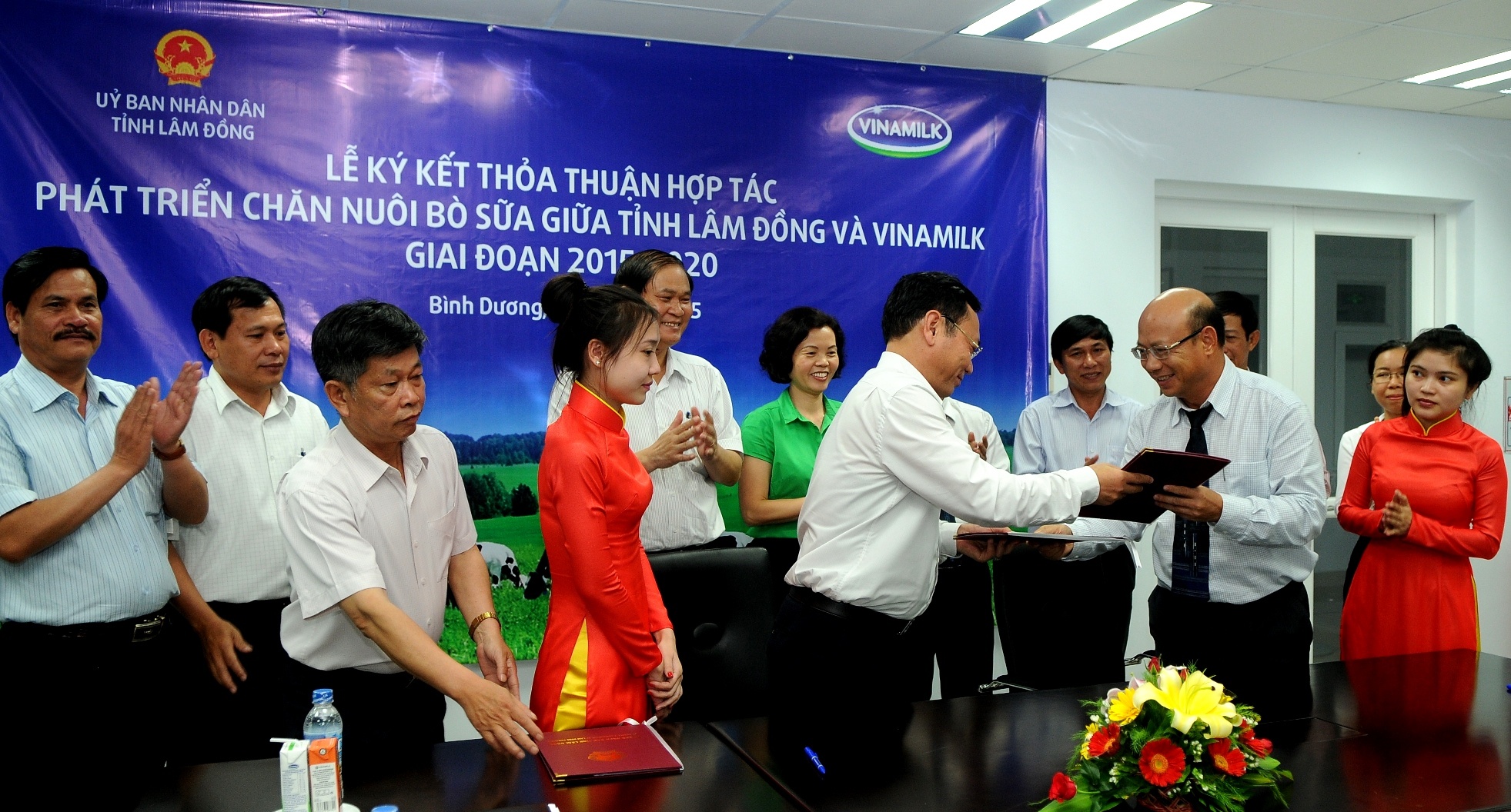 Ngày 13/6, tại Nhà máy sữa Mega Việt Nam, Bình Dương, Ủy ban nhân dân tỉnh Lâm Đồng và Công ty cổ phần sữa Việt Nam (Vinamilk) đã thống nhất ký kết văn bản thỏa thuận khung về hợp tác phát triển chăn nuôi bò sữa trên địa bàn tỉnh Lâm Đồng giai đoạn 2015-2020.