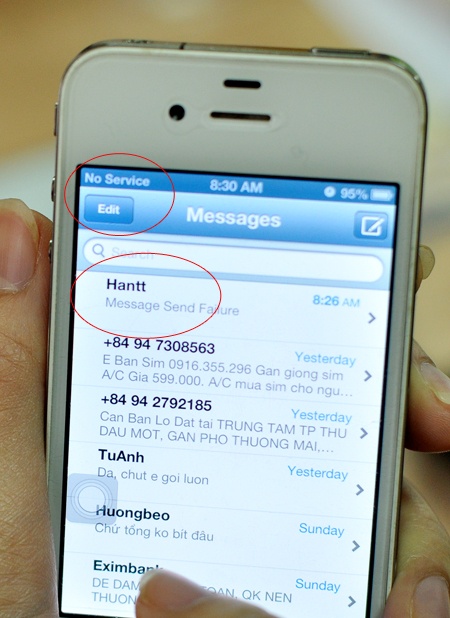 | Khi gửi tin nhắn hoặc gọi điện từ mạng VinaPhone đều không thể thực hiện được. Ảnh: Ngọc Linh. |