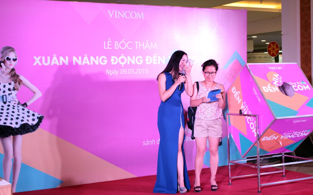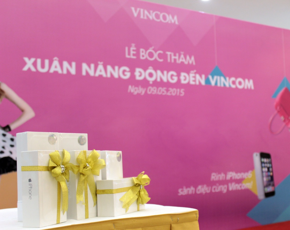 Nằm trong chuỗi sự kiện của chiến dịch Đến Vincom, Xuân năng động - Đến Vincom là chương trình quà tặng trúng thưởng xen kẽ trò chơi vận động tương tác dành cho các khách hàng tham quan mua sắm tại toàn bộ hệ thống TTTM Vincom trên cả nước. 10 khách hàng có cơ hội “may mắn kép” sở hữu một trong 10 chiếc điện thoại di động iPhone 6 sành điệu.