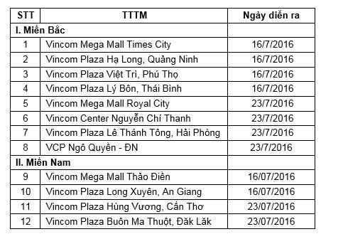 Chương trình thời trang ứng dụng, Vincom golden runway sẽ diễn ra vào ngày 16/7 hoặc 23/7 tại các TTTM Vincom, vào cửa miễn phí.