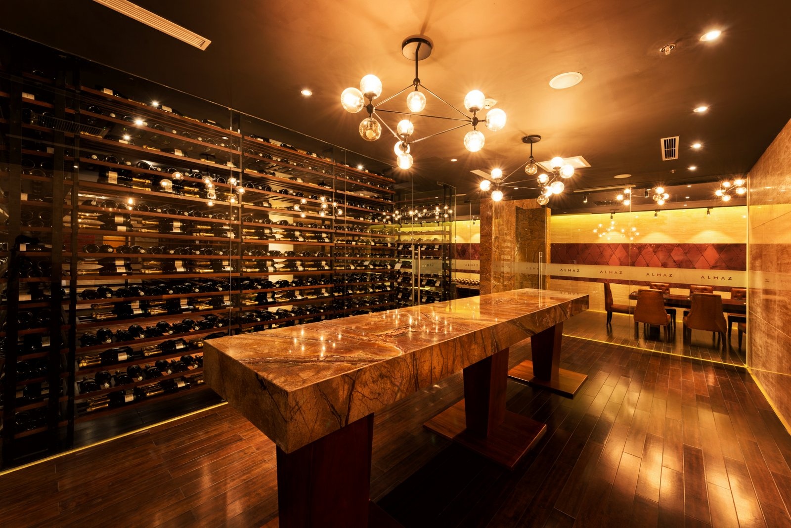 Bên cạnh khu hội nghị, ẩm thực, điều góp phần làm nên nét độc đáo của trung tâm là không gian giải trí sang trọng và tao nhã Amber Wine Lounge - hầm rượu hổ phách hội tụ bộ sưu tập rượu nổi tiếng. Ngoài ra, khách hàng cũng sẽ được thưởng thức âm nhạc du dương lãng mạn và thưởng thức không gian ngoài trời đầy lãng mạn tại Sapphire Skybar; thư giãn tại Almaz Karaoke, Almaz Bowling… Với sự sang trọng, lịch lãm mang phong cách hiện đại, Almaz đang thực sự mang một thế giới đẳng cấp mới đến với người Hà Nội.
