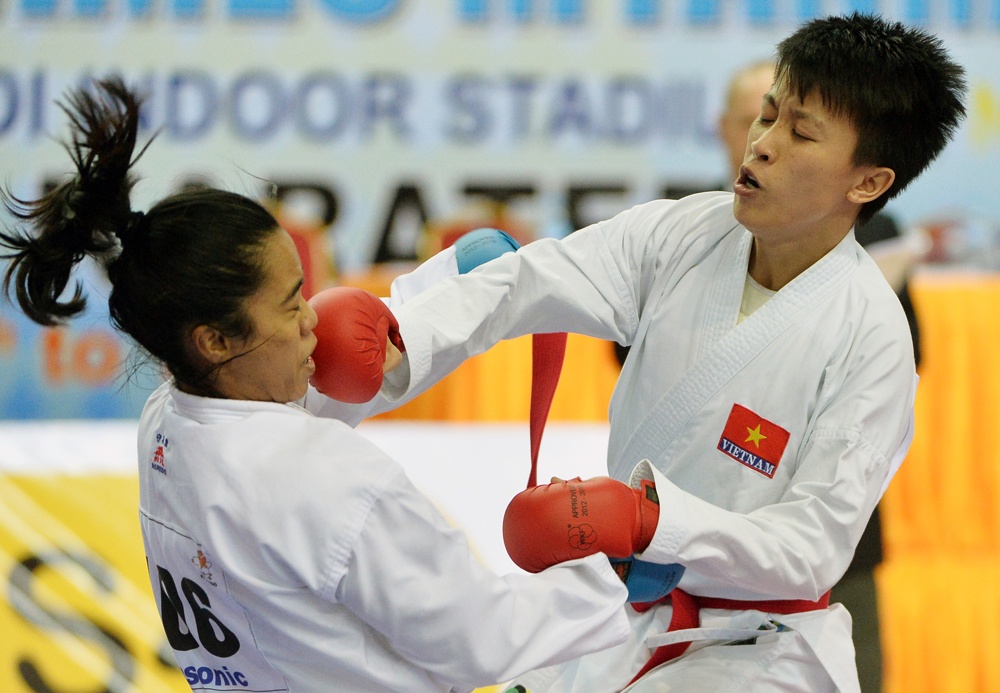 Chiều 14/12, Nguyệt Ánh trở thành vận động viên duy nhất của môn karatedo nội dung kumite hạng 50kg.