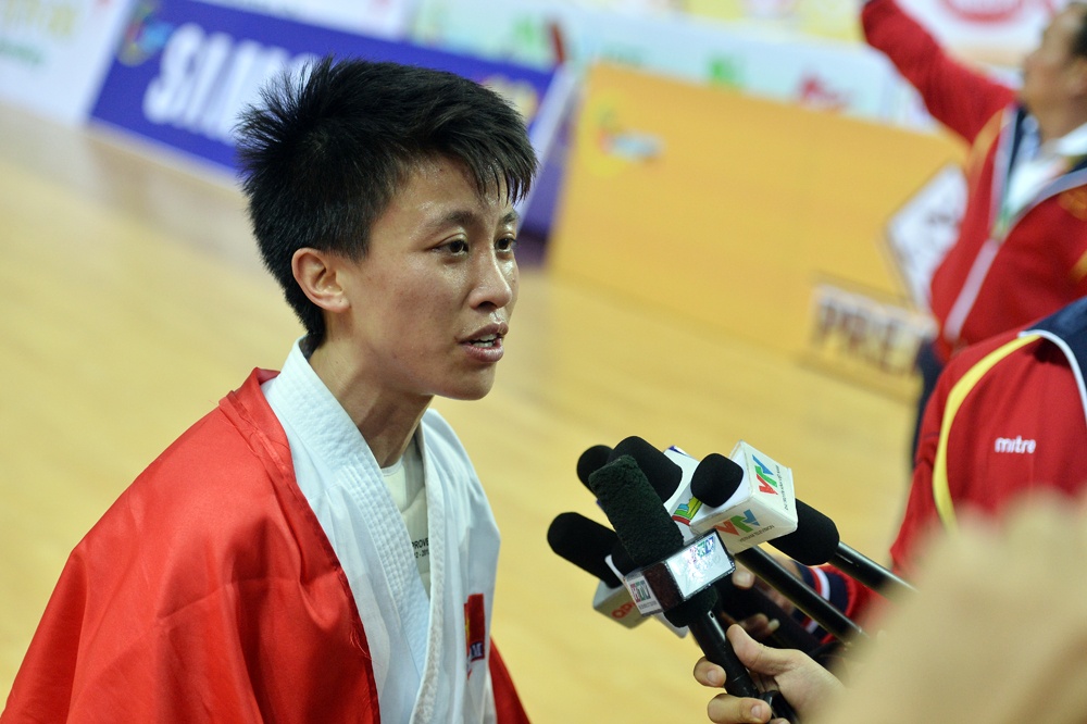 Cùng thi đấu trong buổi chiều qua ở nội dung kumite cá nhân nữ còn có vận động viên Lê Thị Thúy (ảnh, hạng 61kg) và Trần Hoàng Yến Phượng (nội dung 55kg). Lê Thị Thúy đã thua Syakilla (Malaysia) 0-1 trong trận chung kết đành nhận huy chương bạc.