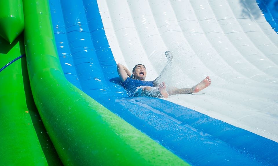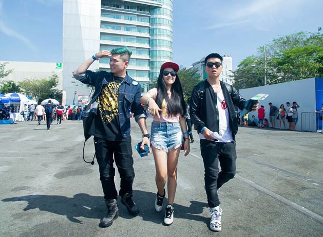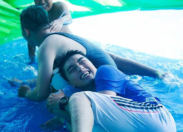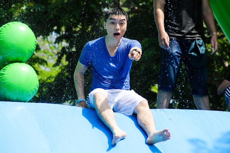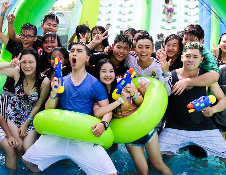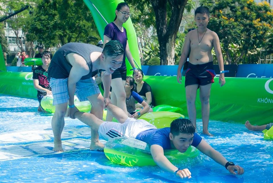 Tinh thần lăn xả, cá tính vui nhộn của cặp đôi Ngọc Trai, Bảo Kun mang lại nhiều tiếng cười, giây phút sảng khoái cho các bạn trẻ có mặt tại đường trượt nước khổng lồ ở Sài Gòn.