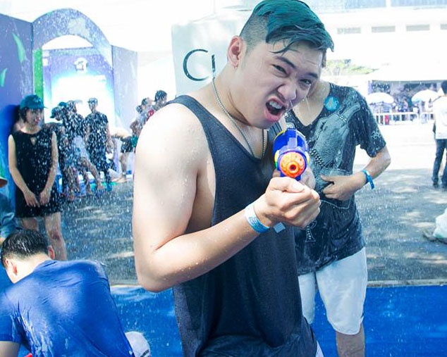 | Giây phút sảng khoái, bật tung mát lạnh của chàng VJ không biết bơi nhưng quậy rất sung. |