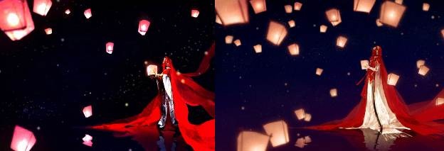 | Cosplay Lục Yên Nhi (trái) và tạo hình trong game (phải). |