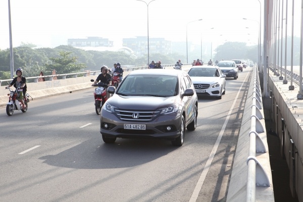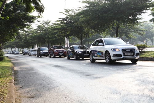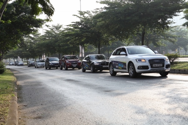 | Đoàn xe gồm Audi Q5, BMW 320i GT, Chevrolet Colorado, Ford Focus, CR-V, Range Rover Evoque, Mercedes E400 AMG, Mitsubishi.... |