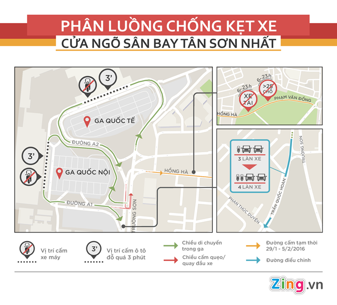 Bản đồ phân luồng giao thông cửa ngõ sân bay Tân Sơn Nhất. |