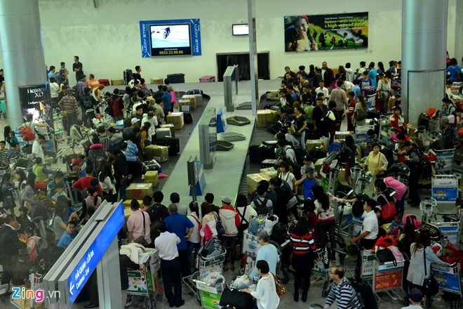 Trong 2 ngày qua, tại khu vực Ga đến quốc tế sân bay Tân Sơn Nhất, nhiều chuyến bay từ nước ngoài đáp xuống chở hàng nghìn Việt kiều về quê ăn Tết. Tại khu vực lấy hành lý, nhiều hành khách phải chờ đợi khá lâu. Ảnh: Lê Quân. |