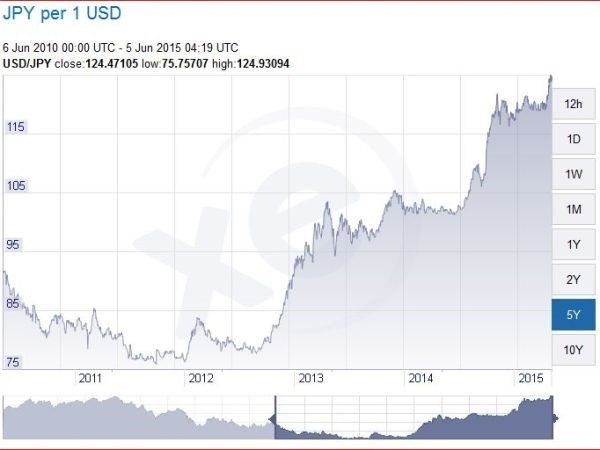 Bên cạnh đó, kể từ cuối năm 2012 Chính phủ Nhật thực hiện chính sách phá giá đồng yen, khiến tỷ giá USD/yen tăng từ mức 78 yen lên 176 yen, tăng tương ứng khoảng 125% (từ 9/2012 đến 6/2014).