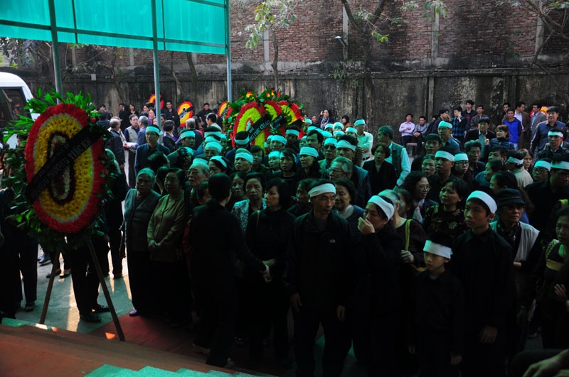 | Người nhà bác sĩ Tường đến dự đám tang một cách lặng lẽ. |