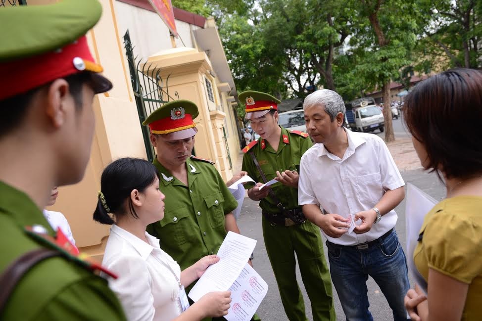 Sau hơn một tháng hoãn phiên xử, sáng 20/5, TAND Hà Nội mở lại phiên xét xử sơ thẩm Nguyễn Đức Kiên (cựu Chủ tịch HĐQT Ngân hàng ACB) và đồng phạm. Trước giờ xử, khá đông người tập trung trước cổng để làm thủ tục vào trong. Do giấy không hợp lệ nên người đàn ông mặc áo trắng (nhận là em trai của Nguyễn Đức Kiên) không được vào bên trong.