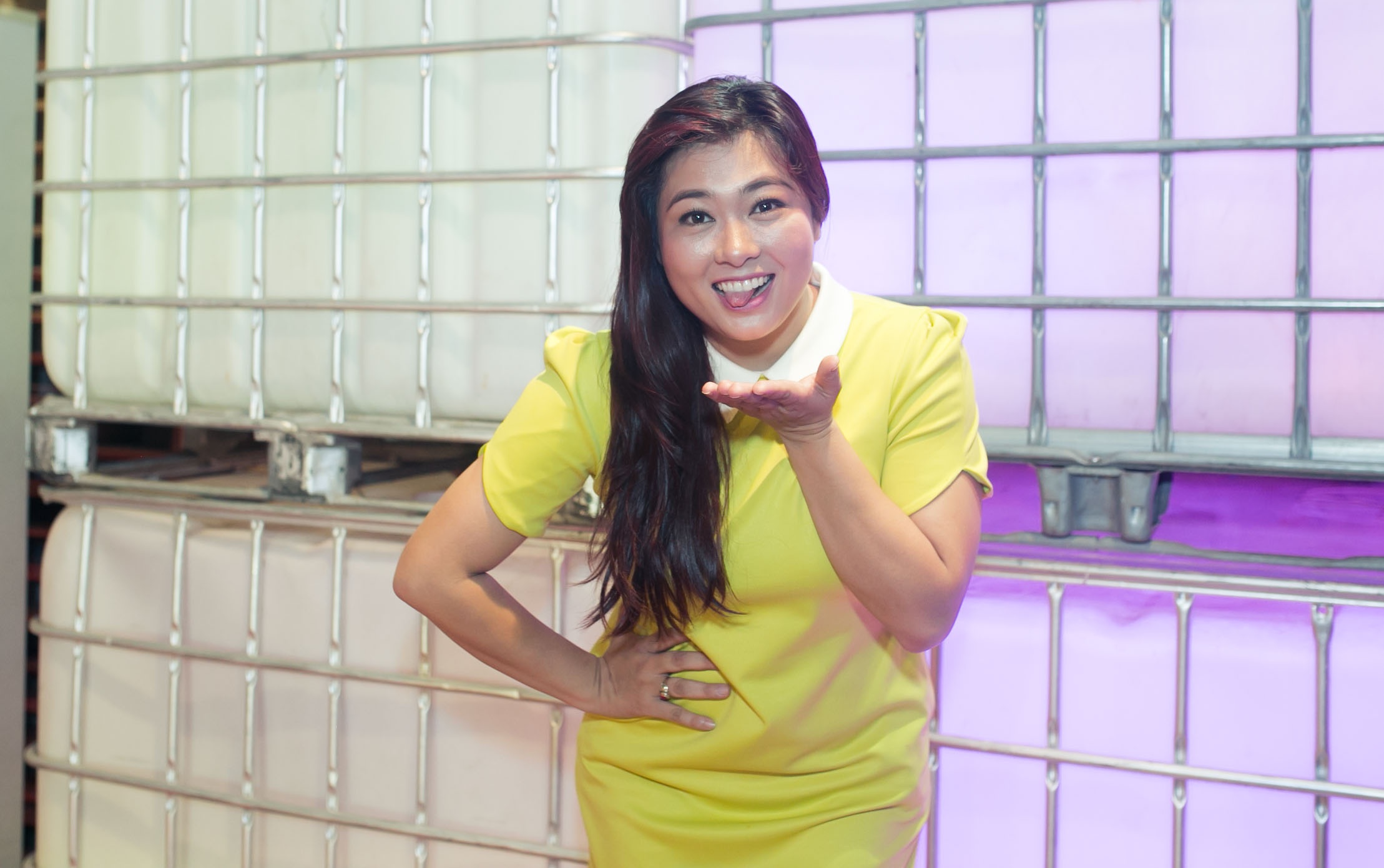 | Chủ nhân của bản hit Bốn chữ lắm điệu đà và nổi bật với trang phục chấm bi. |