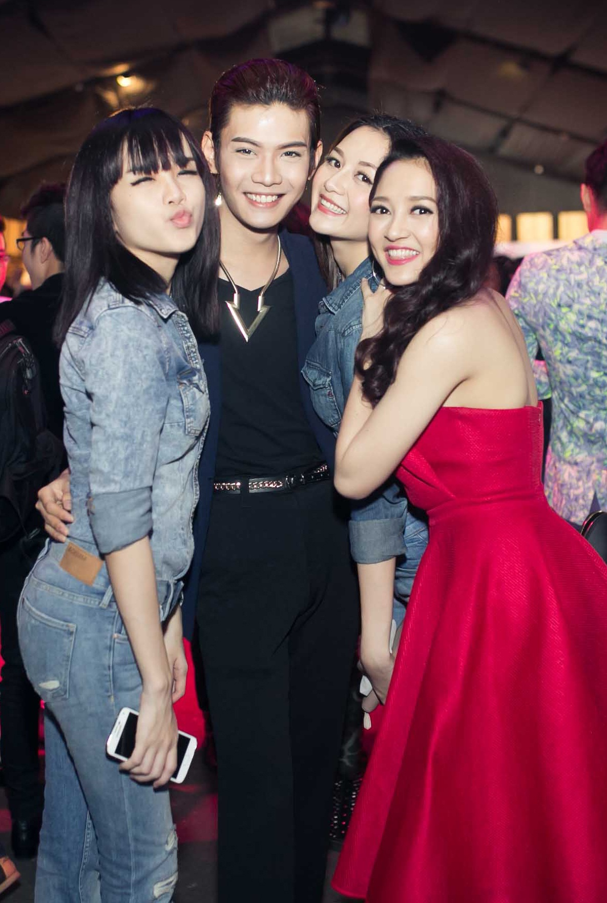 | Phở Đặc Biệt nhắng nhít chụp ảnh với Ngọc Thảo và bạn bè trong đêm tiệc. |