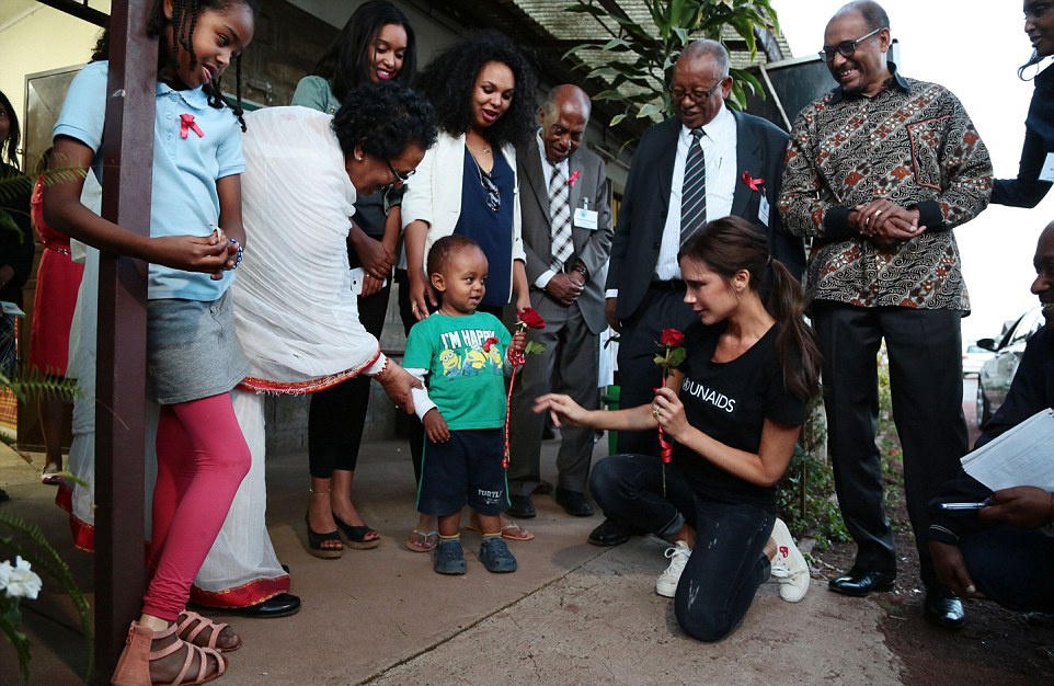 | Trong khi đó, cô vợ Victoria Beckham cũng có mặt tại Ethiopia trong một sự kiện được tổ chức bởi Chương trình phòng chống HIV - AIDS của Liên hợp quốc (UNAIDS). |
