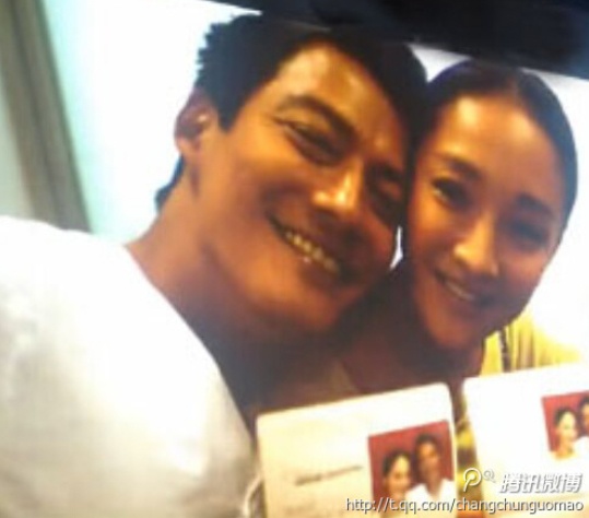 Vợ chồng Châu Tấn khoe giấy đăng ký kết hôn.