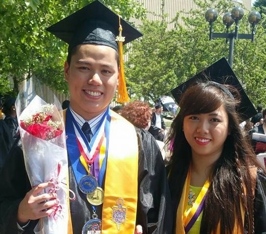 Vợ chồng trong ngày tốt nghiệp trường Bunker Hill . Ảnh: NVCC. |