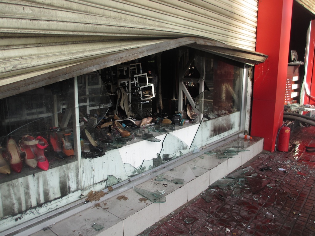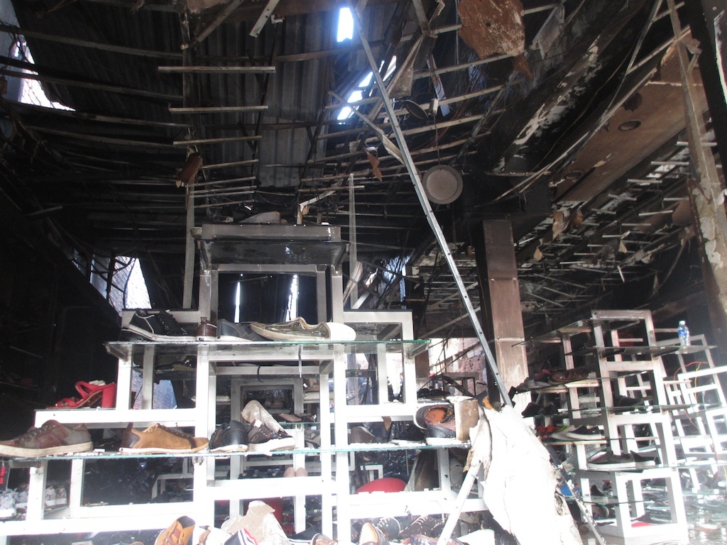 | Lực lượng chữa cháy phải phá cửa cuốn, đưa vòi rồng vào bên trong. |