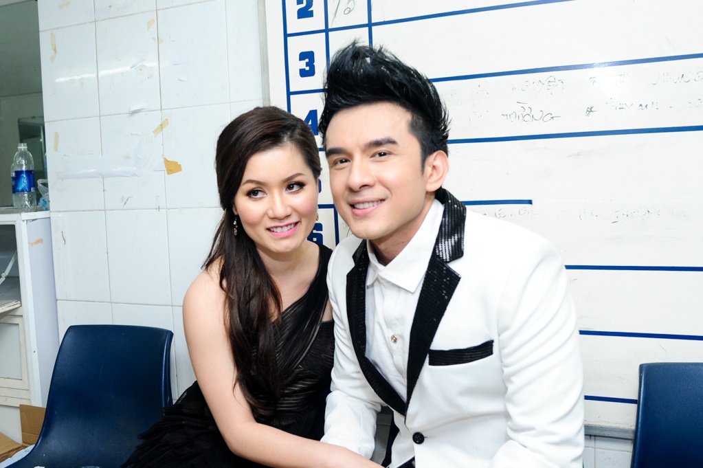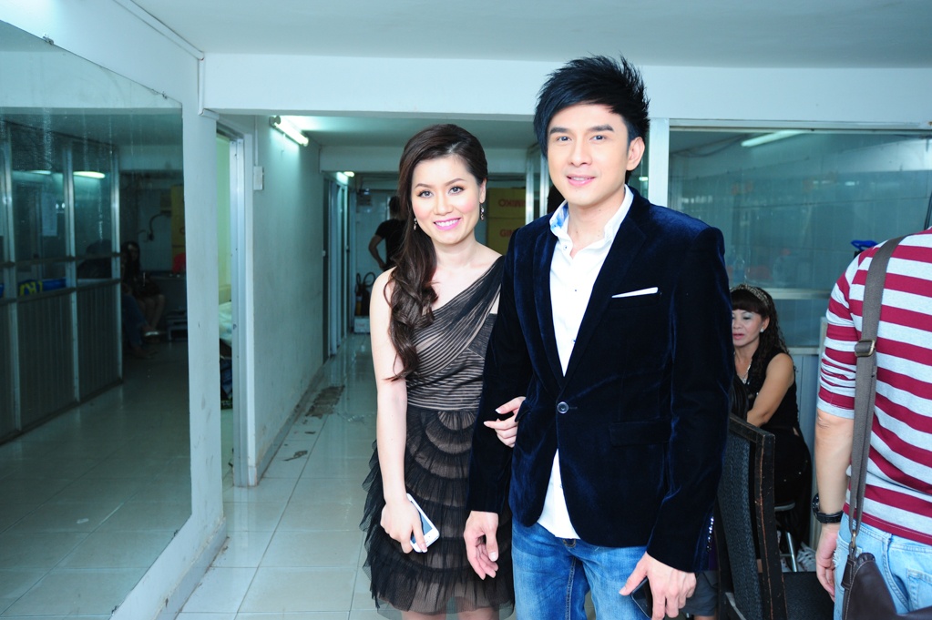 Vợ chồng Đan Trường hôn nhau tình tứ sau cánh gà