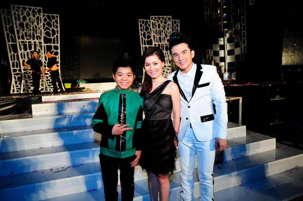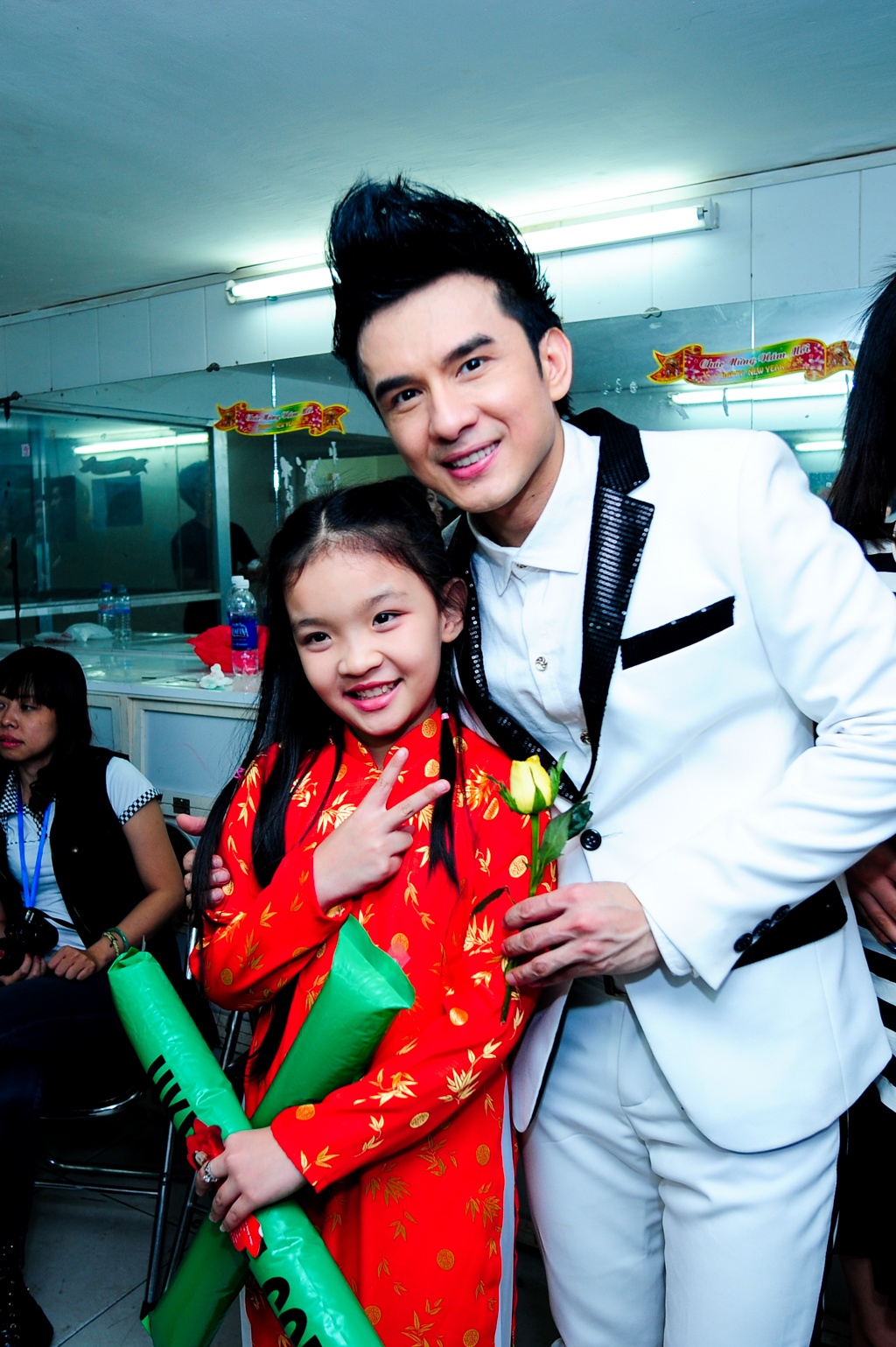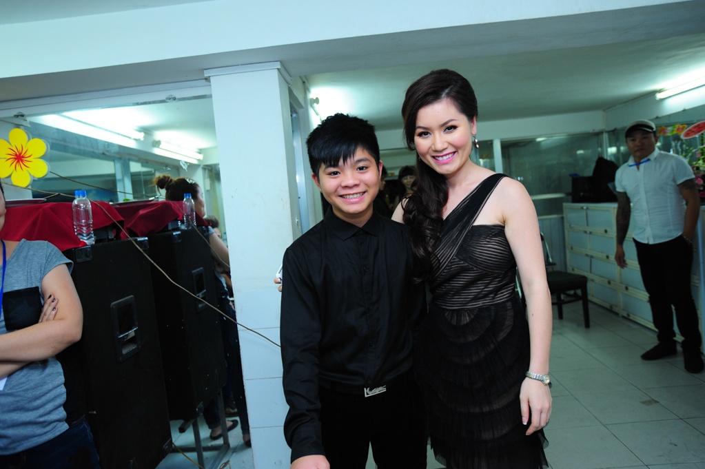 Thủy Tiên rất yêu quý các cô, cậu bé. Cô chụp ảnh chung cùng Quang Anh - quán quân The Voice Kids 2013.
