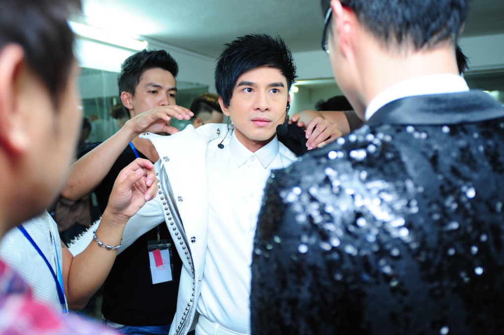 Trong hậu trường, Đan Trường nhiệt tình chụp ảnh với tất cả mọi người.