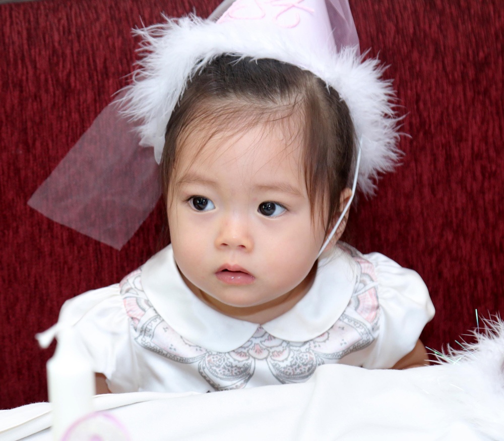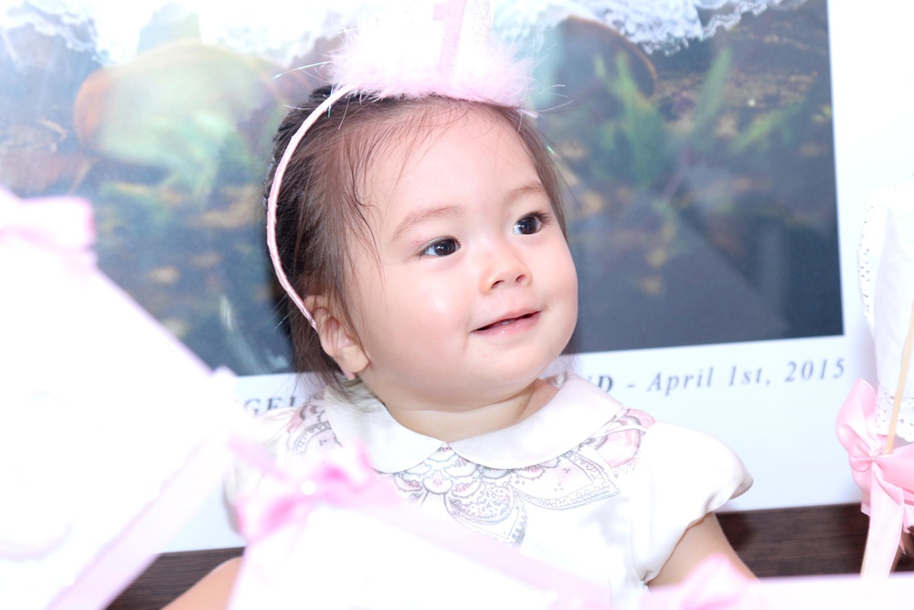 | Con gái Đoan Trang có nickname là Sol (tên thật là Angelina). Trong dịp thôi nôi vừa qua, cô bé chọn micro thay vì những vật dụng khác được bày trước mặt. Đoan Trang chia sẻ, có lẽ cô bé cũng muốn theo con đường nghệ thuật giống mẹ. |